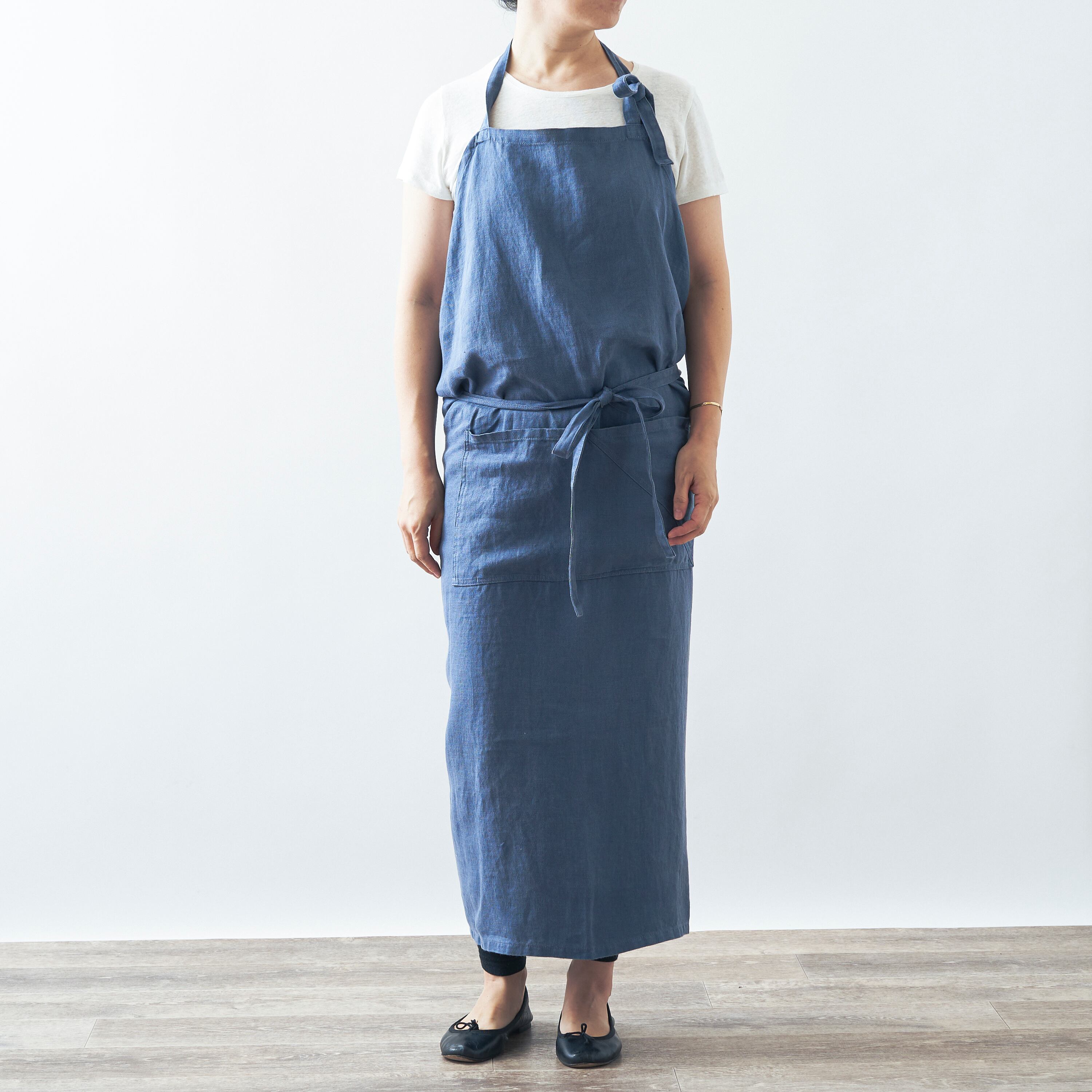 BYSIDE.の定番、丈や幅をたっぷりととったユニセックスのフルエプロン。内側に半分折ればギャルソンエプロンとしても着用できます。