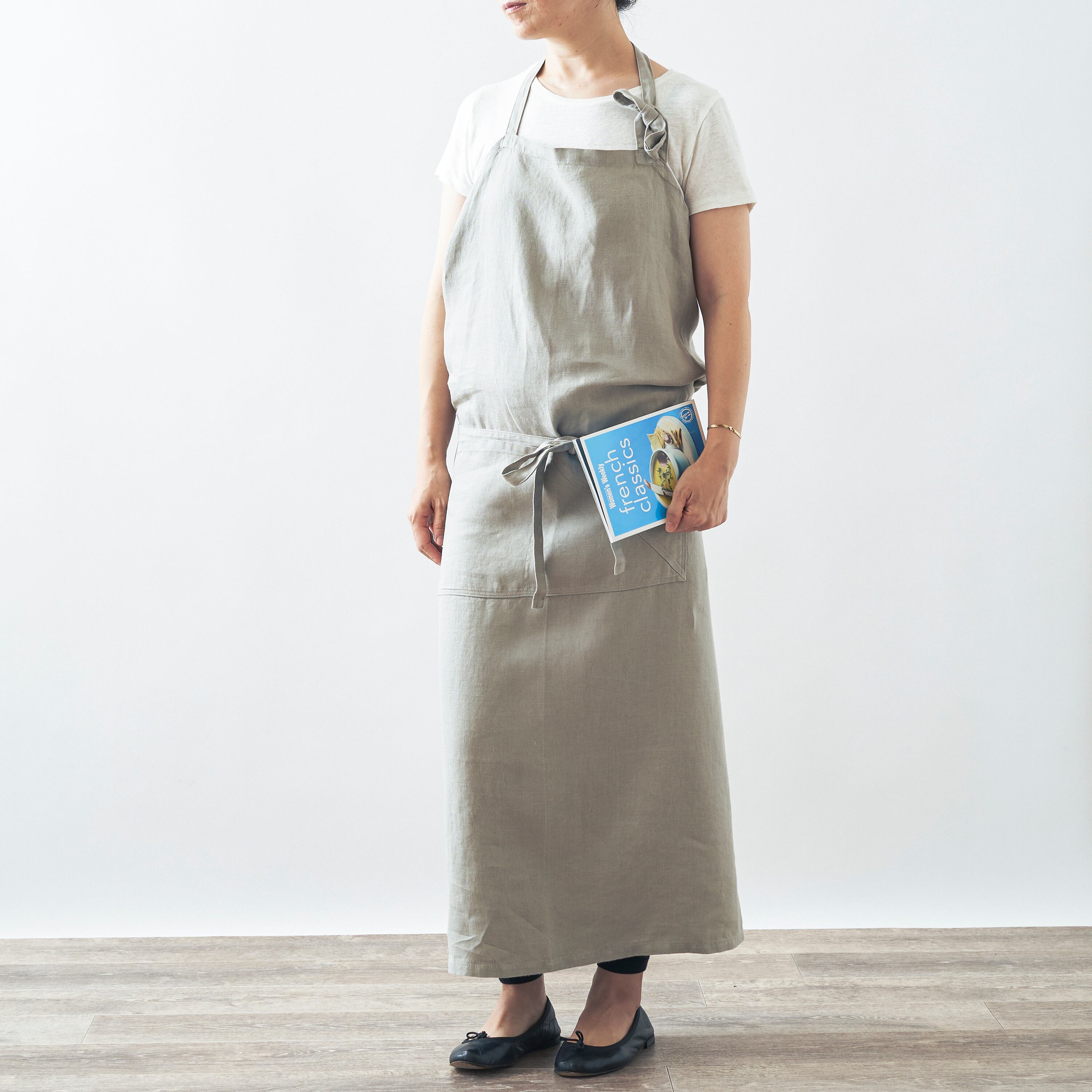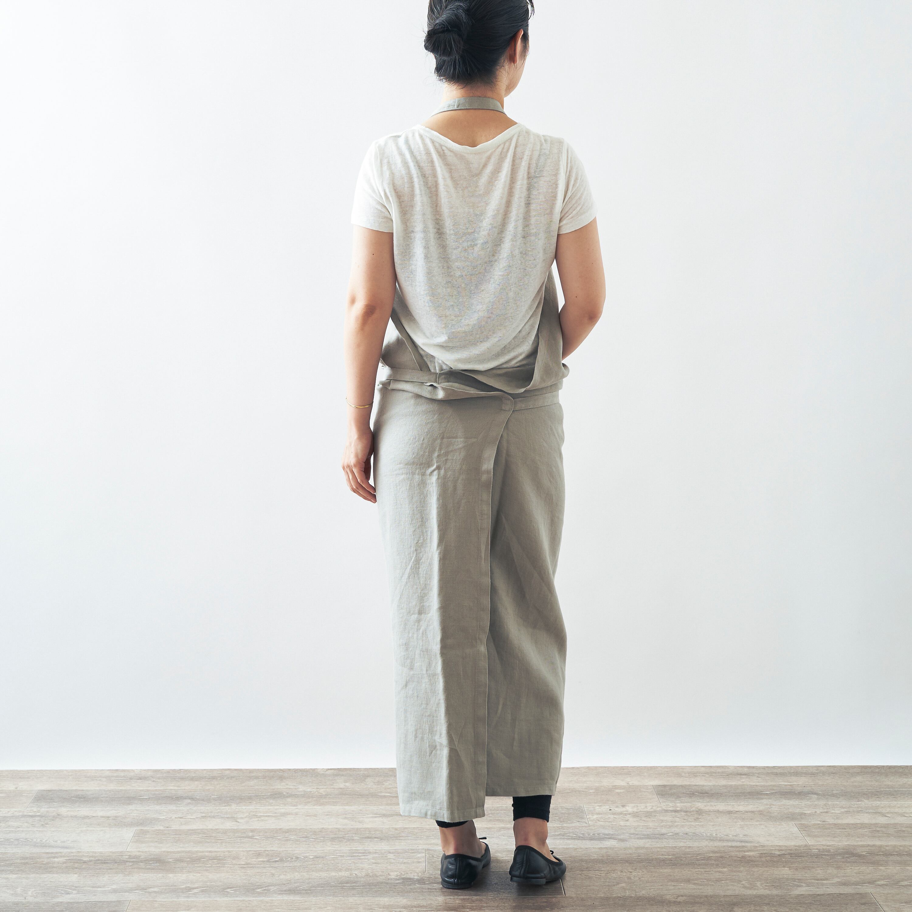 BYSIDE.の定番、丈や幅をたっぷりととったユニセックスのフルエプロン。内側に半分折ればギャルソンエプロンとしても着用できます。